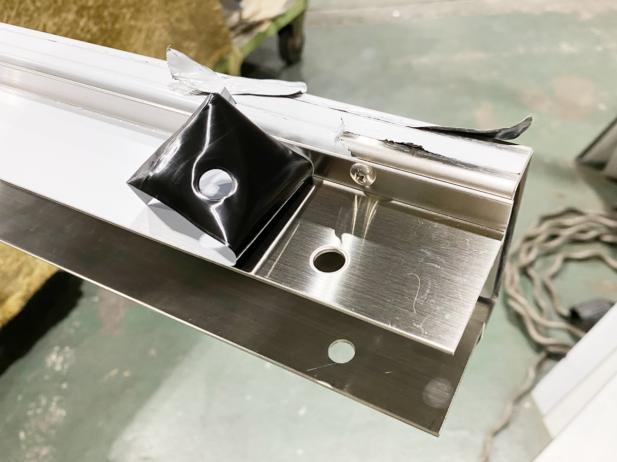 案内のプレートに隠れるところで、材料はSUS1.5H/Lでした。